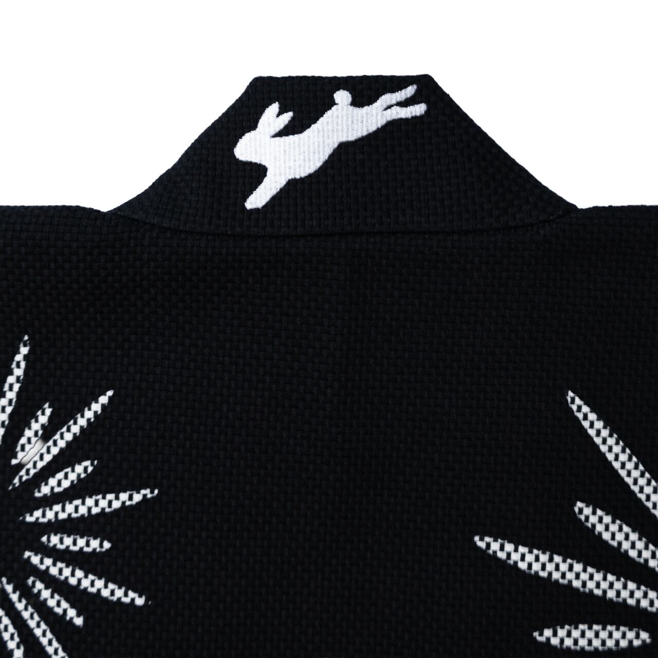 首元には繊細なうさぎの刺繍を施し、月に向かって飛び立つ姿を前身頃に描いています。