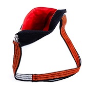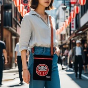 縁起物の“だるま”を大胆にあしらった刺子生地のサコッシュ。