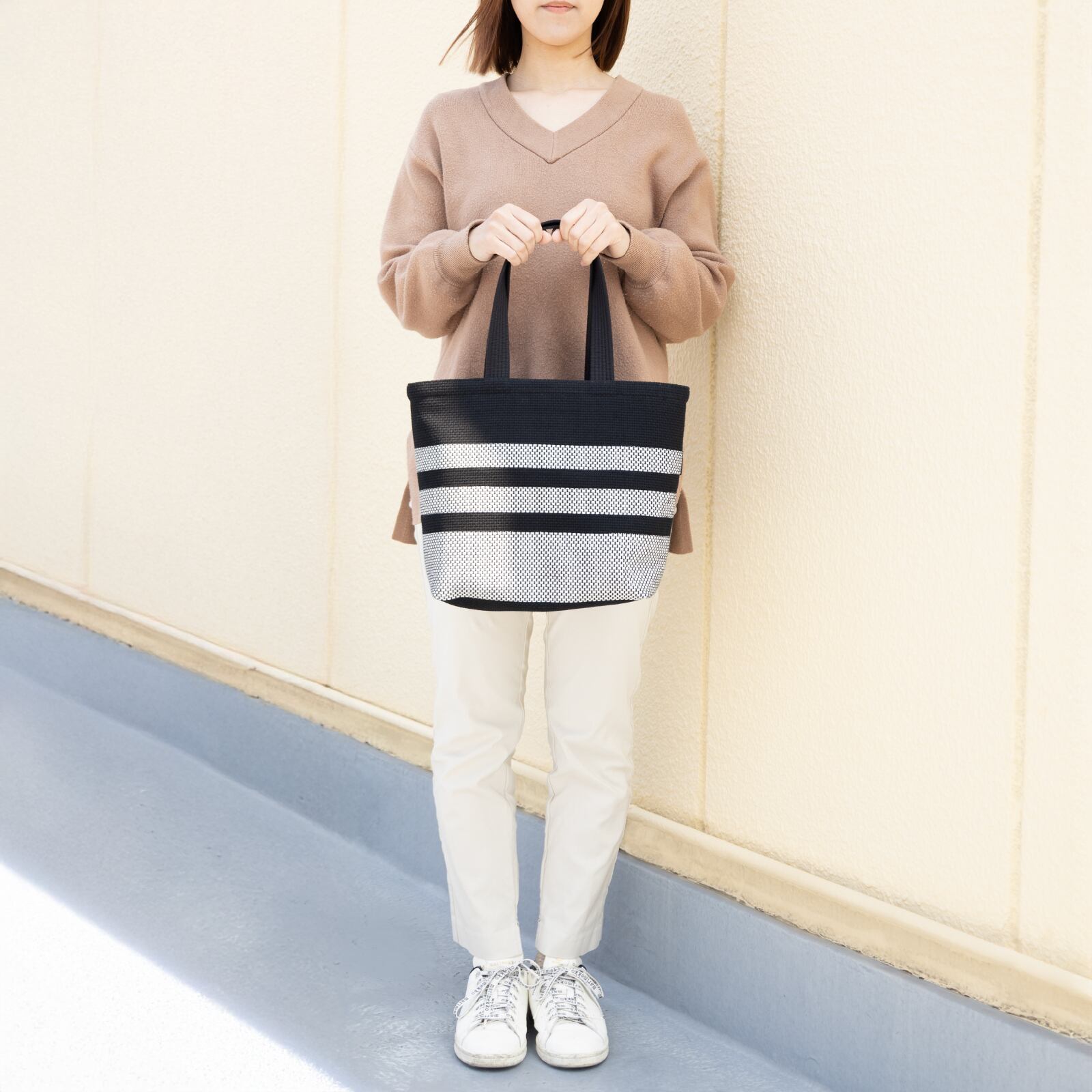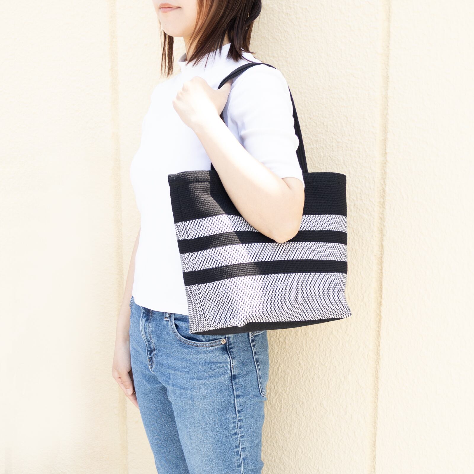 持ち手を長くし、肩にも掛けれるようにしました。