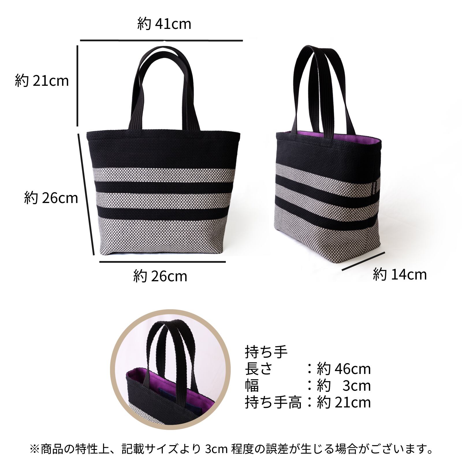 持ち手:3cm×46cm(持ち手高:21cm)