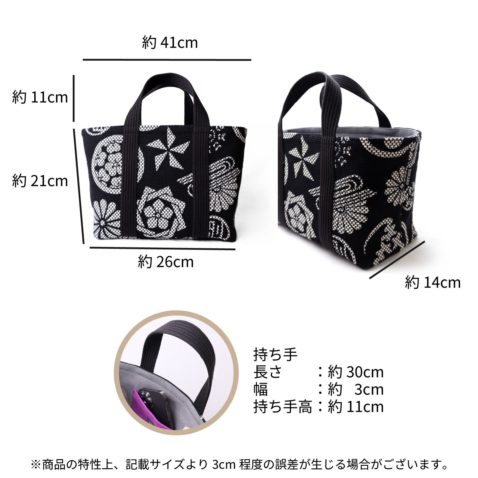 持ち手:3cm×30cm(持ち手高:11cm)
