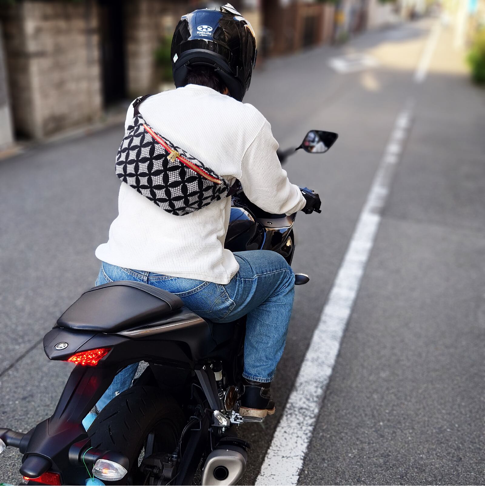 消防法被に使われる刺子生地と、8号帆布を贅沢に使用したボディーバッグです。
