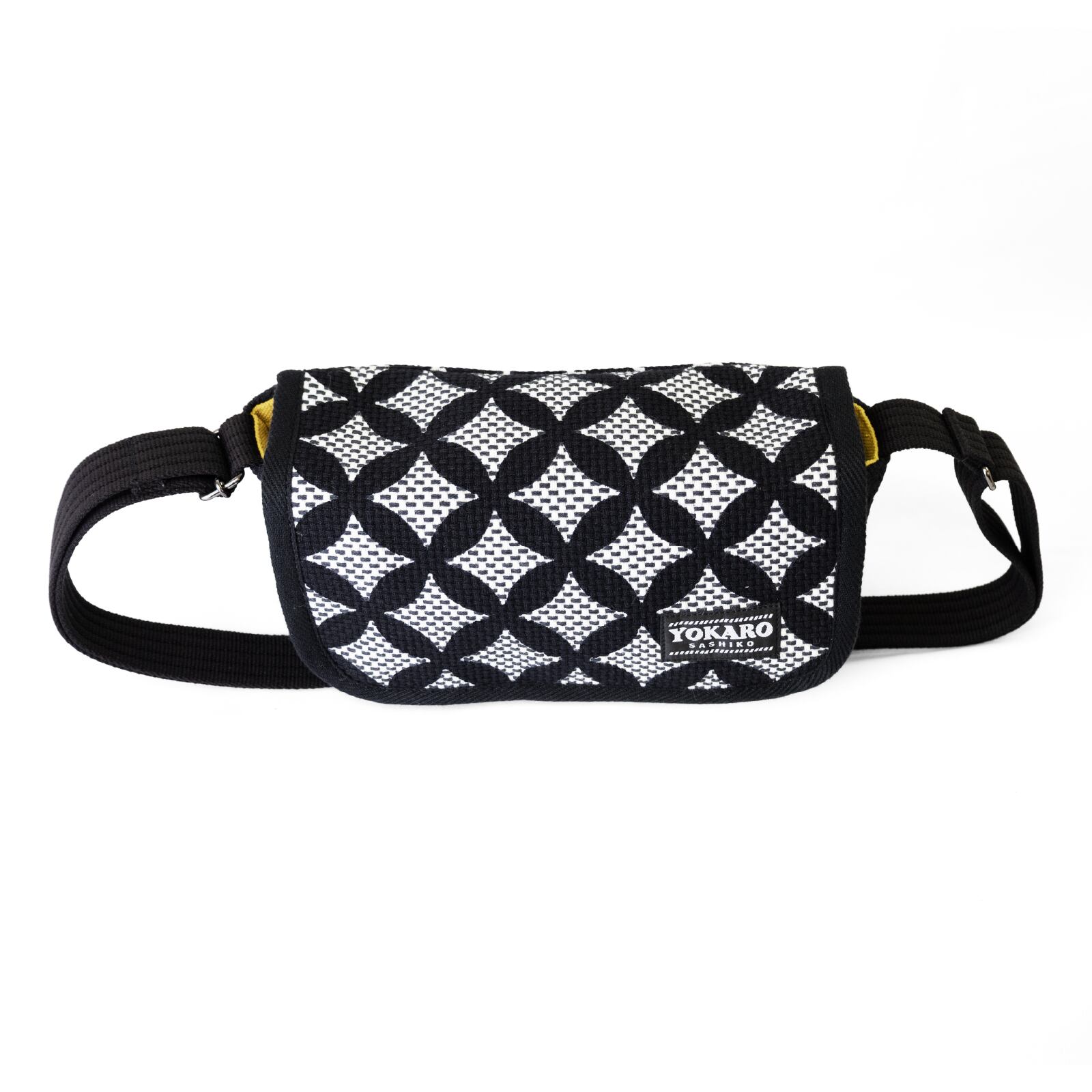 消防法被に使われる刺子生地と、8号帆布を使用した、七宝柄の小さなトートバッグです。