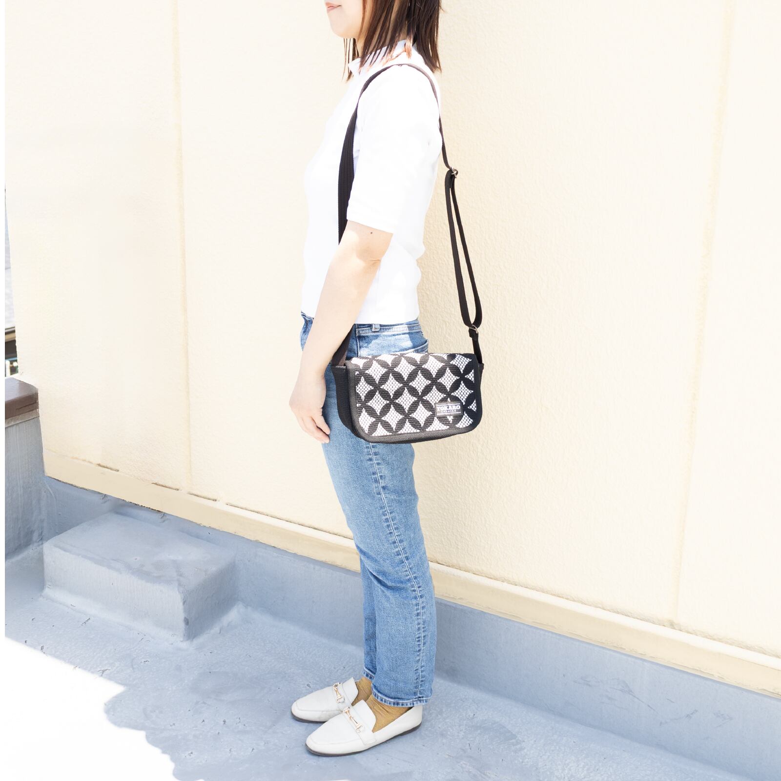 フラップ(蓋)の内側にはスマートフォンがすっきり収まるポケット、内側にも鍵や小物を収納できるポケットを備えています。横幅は長財布が入るように設計されており、ちょっとしたお出かけから旅行まで、幅広いシーンで活躍します。