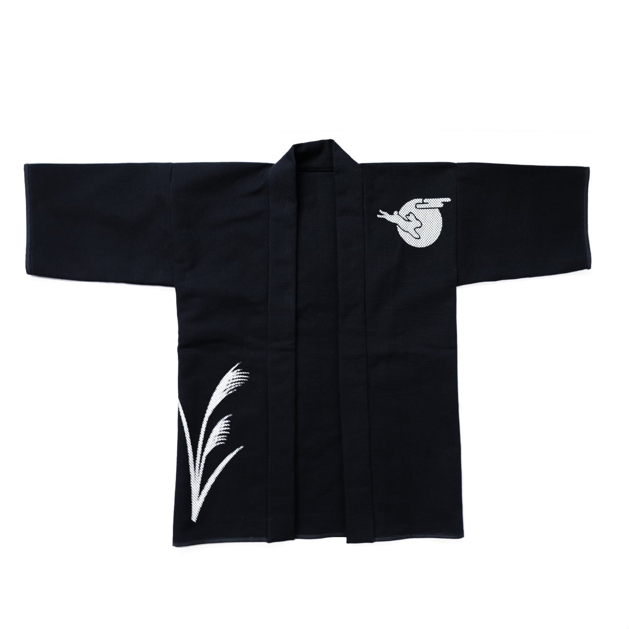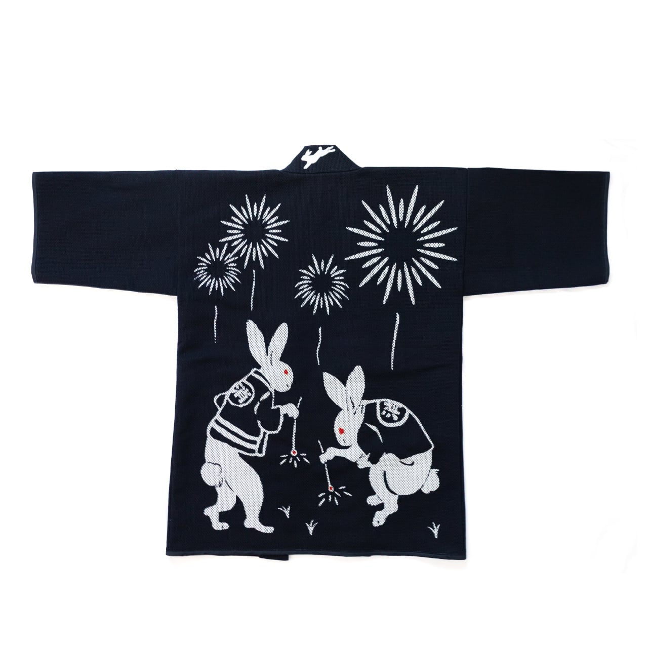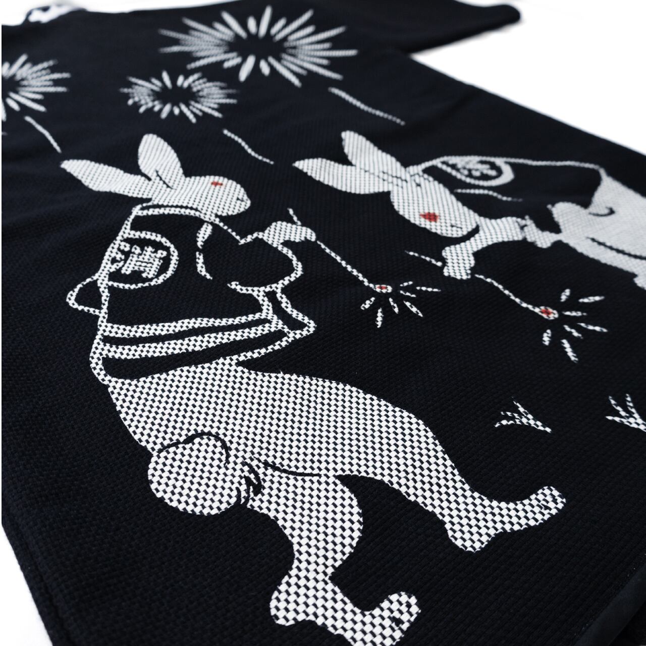 首元には繊細なうさぎの刺繍を施し、月に向かって飛び立つ姿を前身頃に描いています。