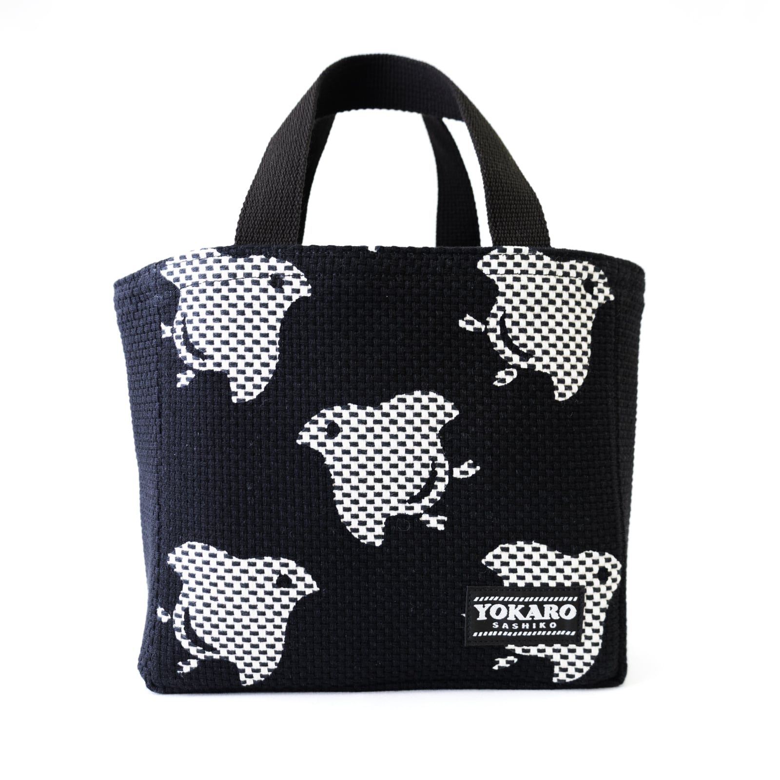 消防法被に使われる刺子生地と、8号帆布を使用した、小さな千鳥柄のミニトートバッグです。