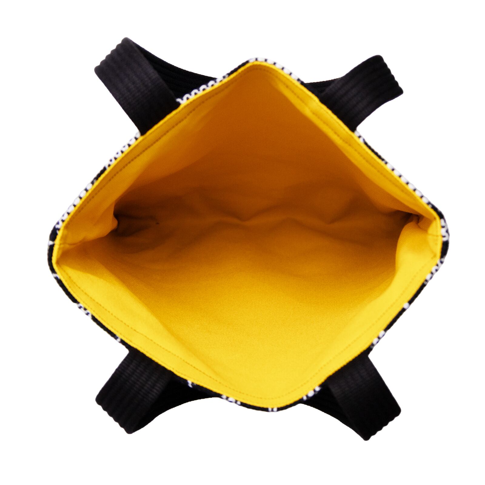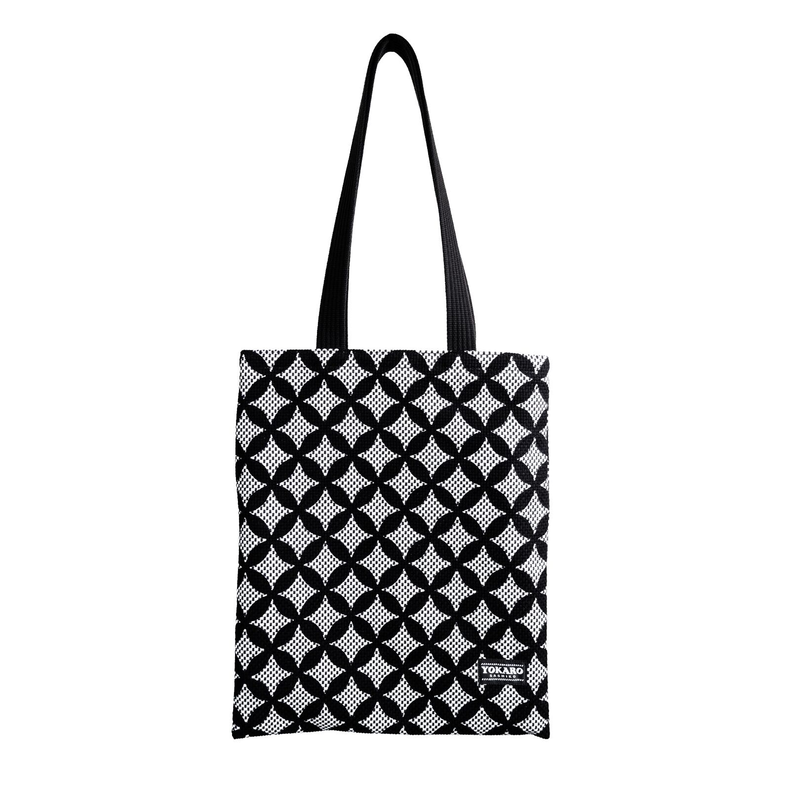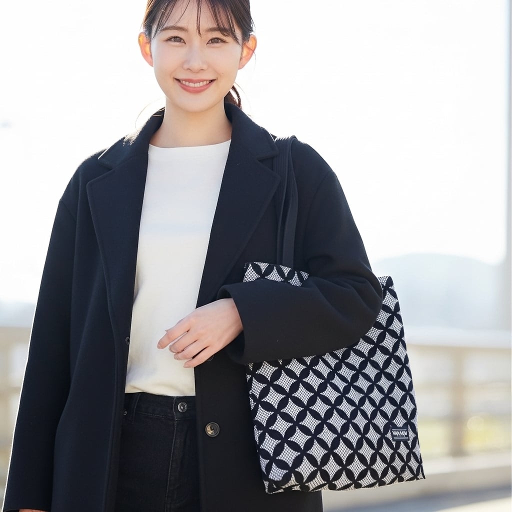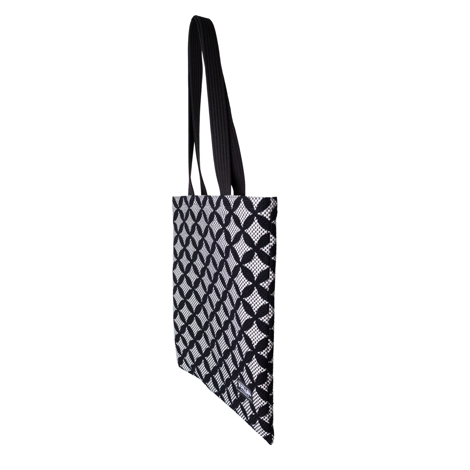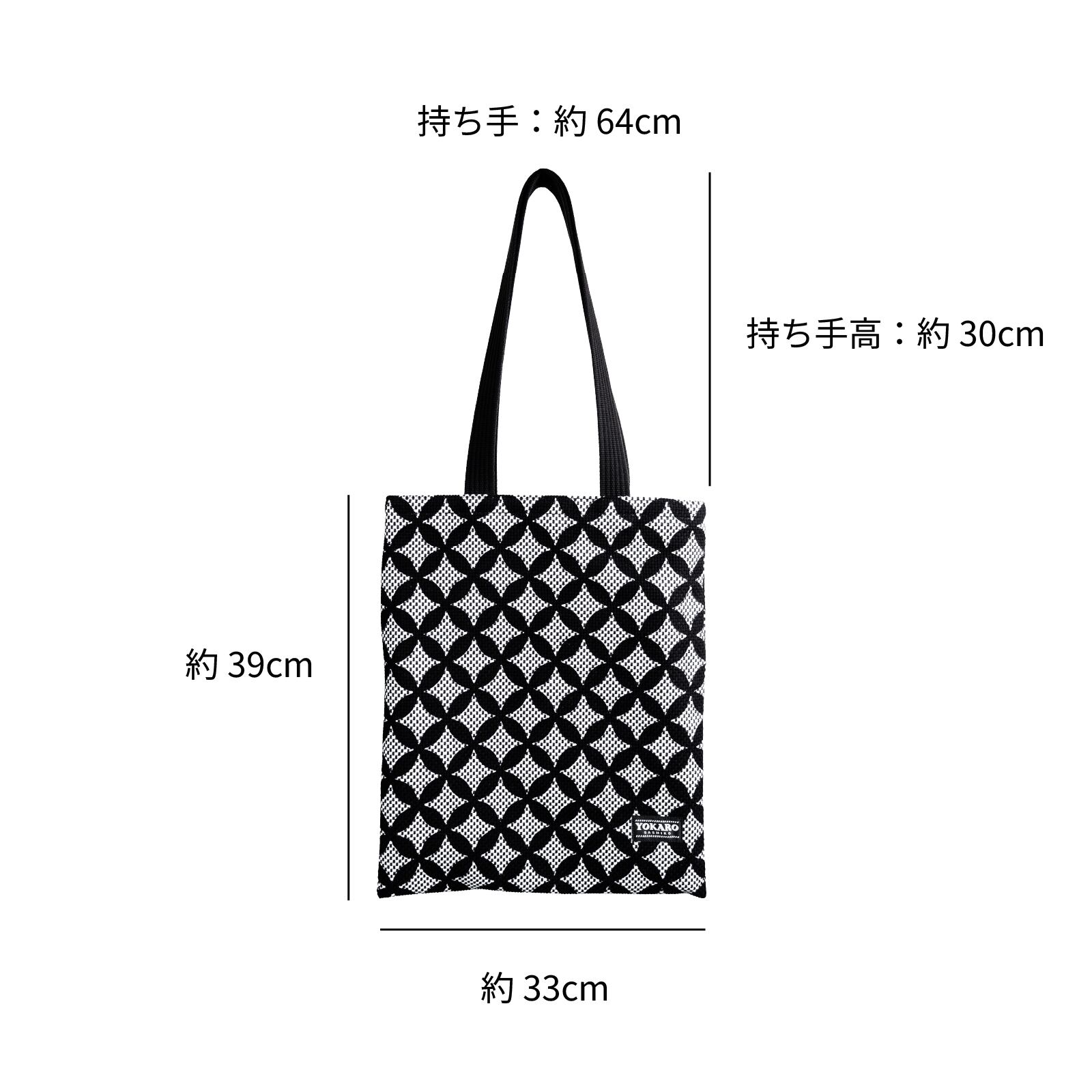 消防法被に使われる刺子生地と8号帆布を使用した、七宝柄のマチのないシンプルなトートバッグです。