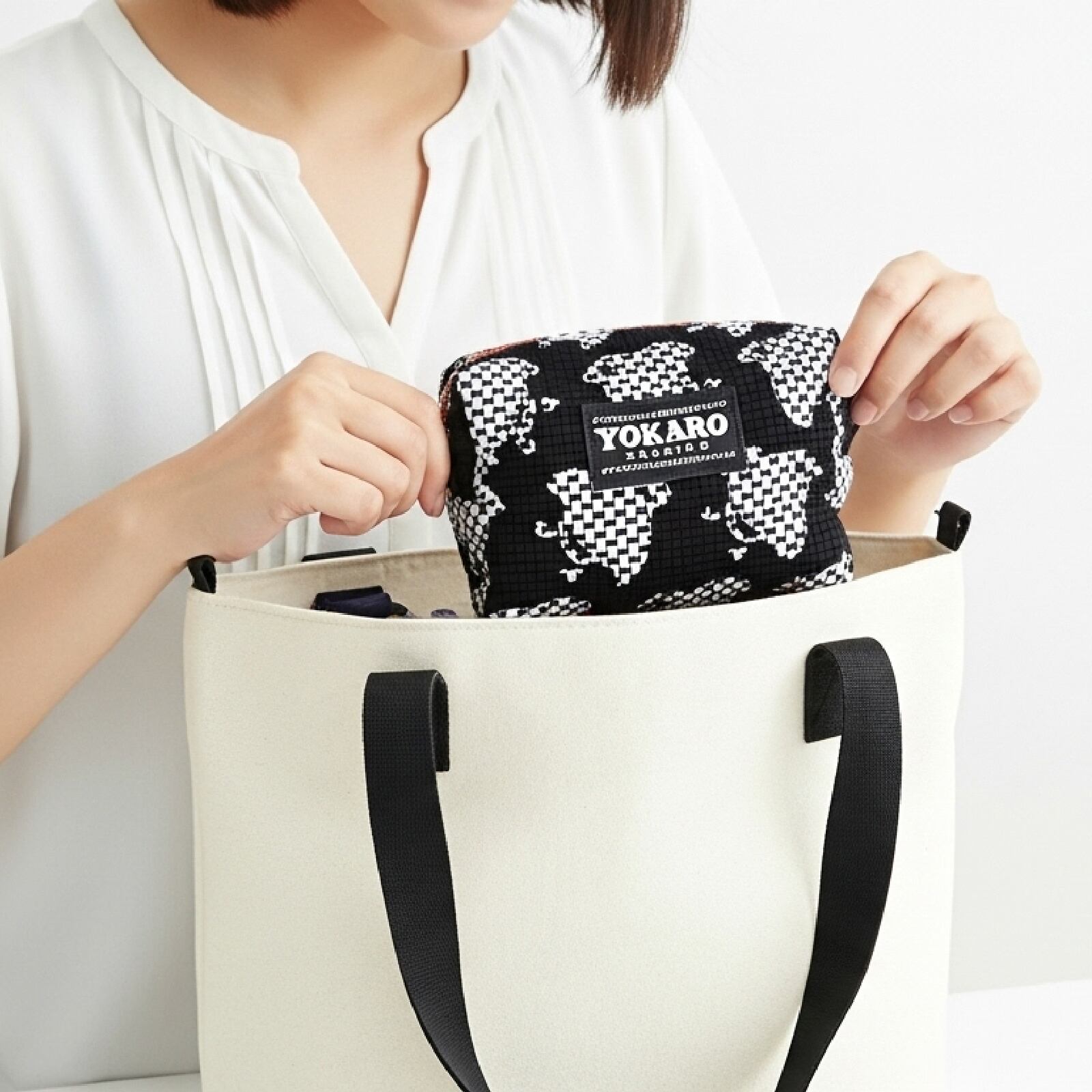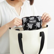 化粧品や小物などをすっきり収められる実用的なポーチに、勝運や家内安全の願いが込められた縁起柄「千鳥模様」を贅沢にあしらい、丁寧に染め上げました。