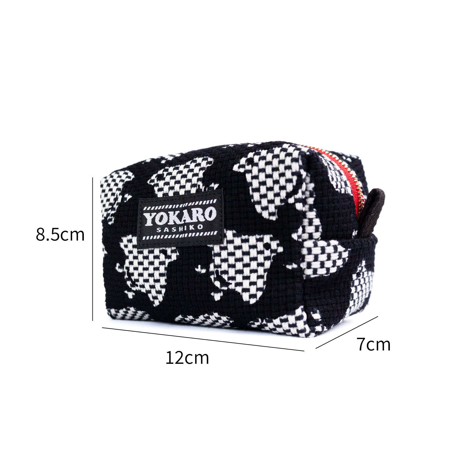 消防法被に使われる刺子生地を使用した、小さな千鳥柄のBOXポーチです。