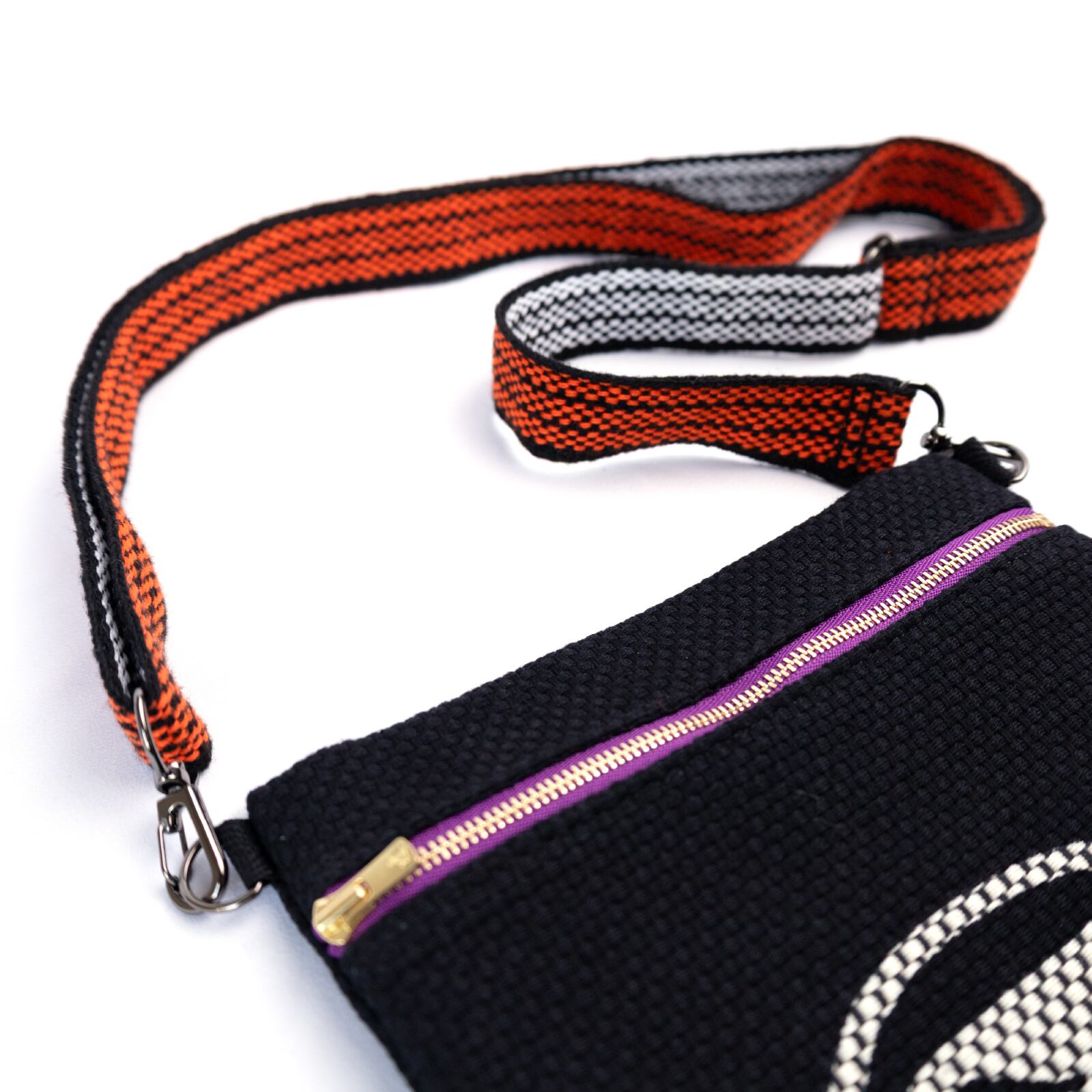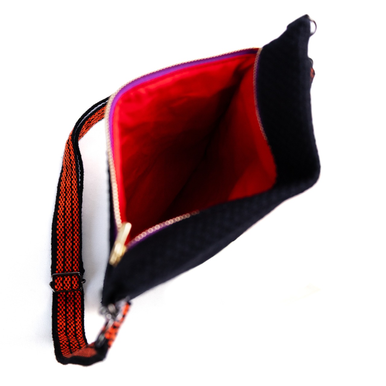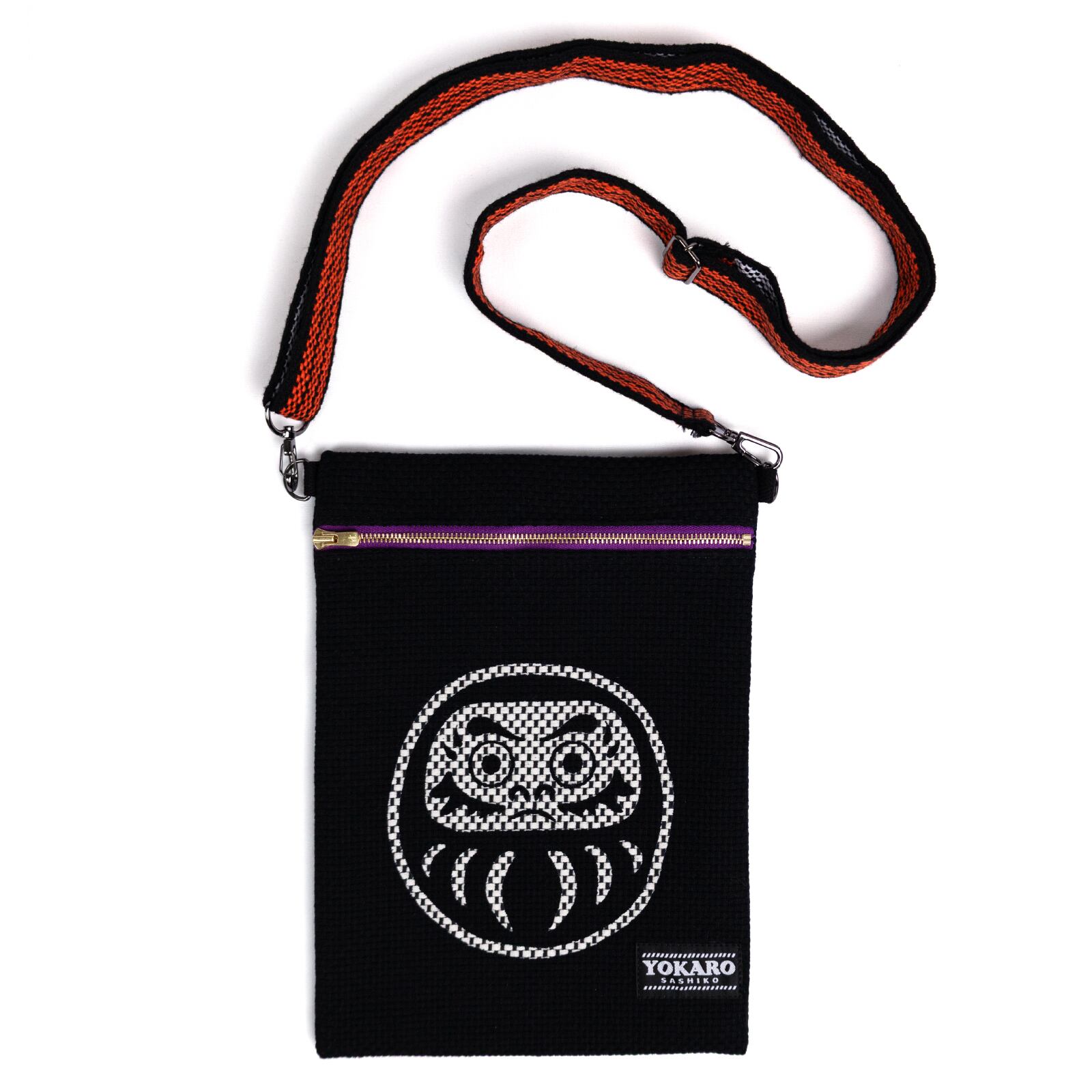 縁起物の“だるま”を大胆にあしらった刺子生地のサコッシュ。