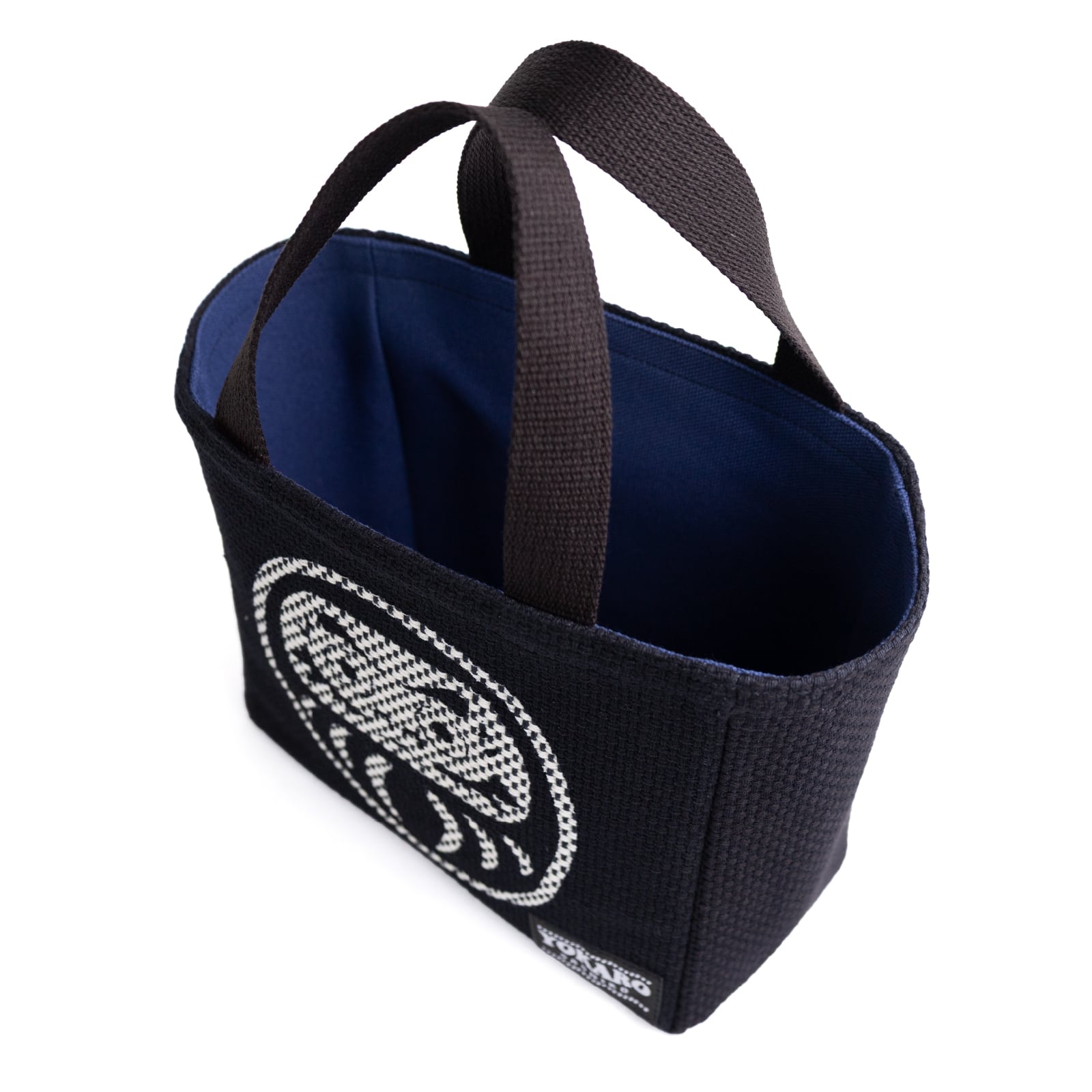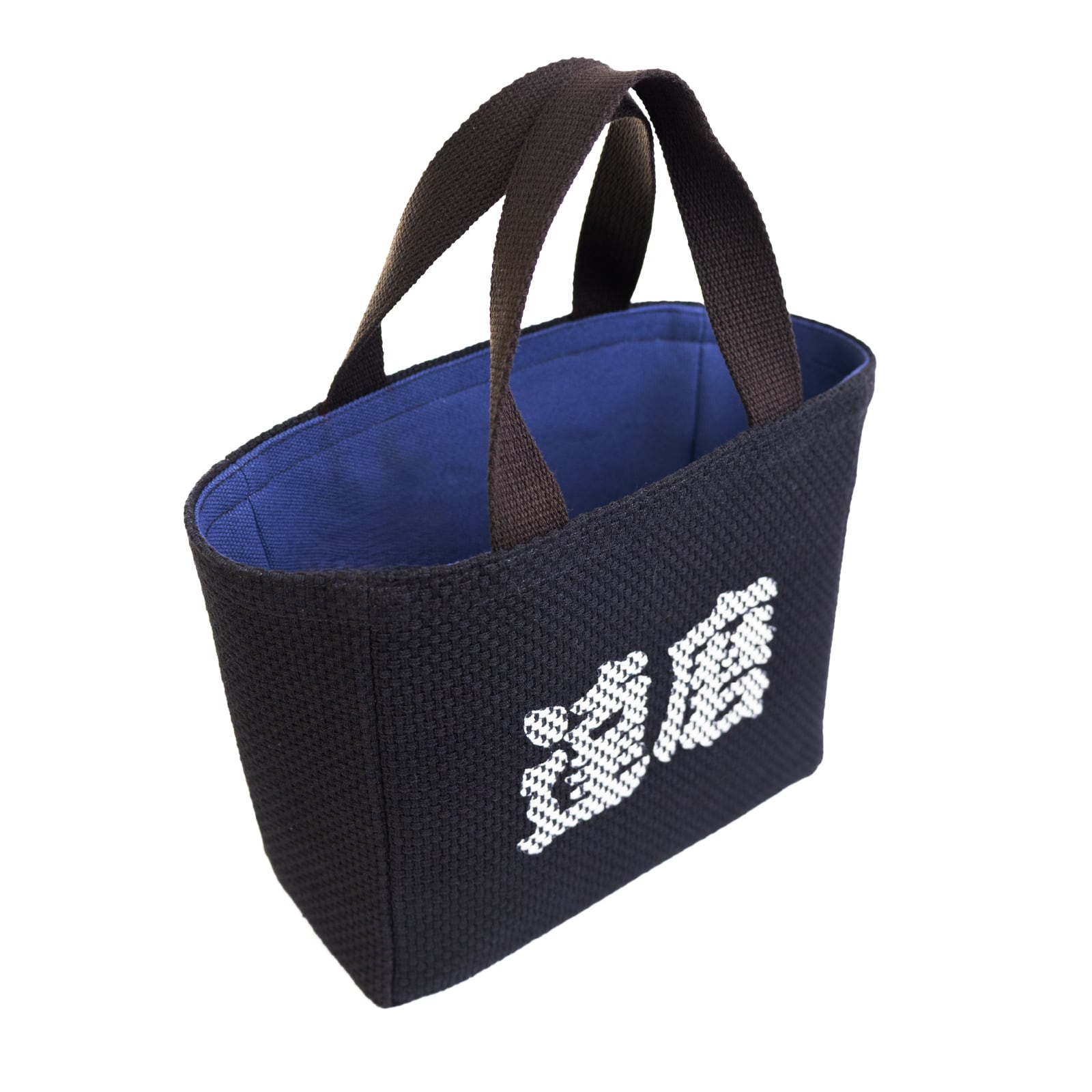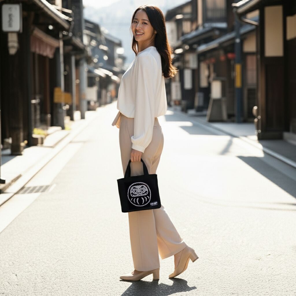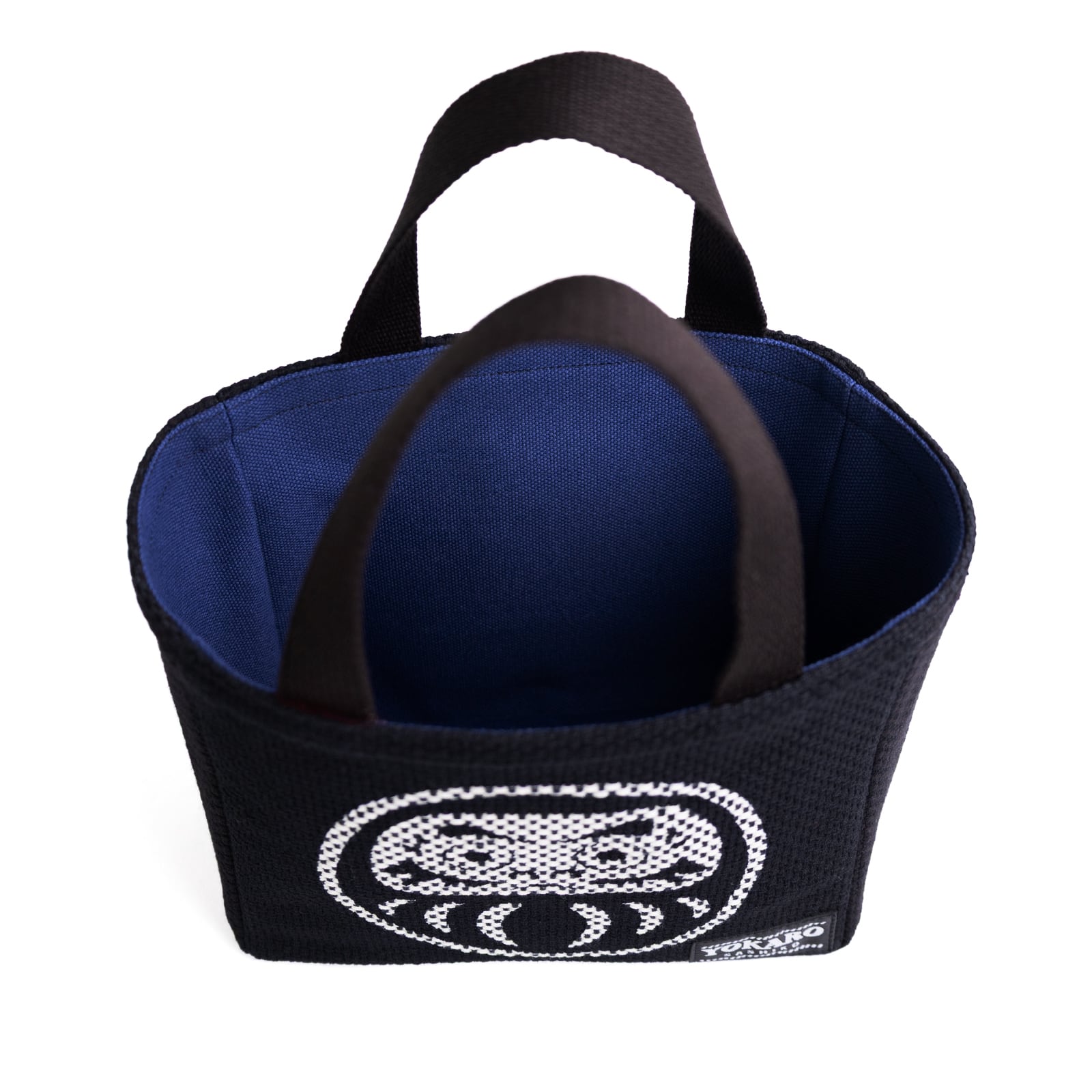縁起の良い「だるま」をモチーフに刺子生地で丁寧に表現したトートバッグ。